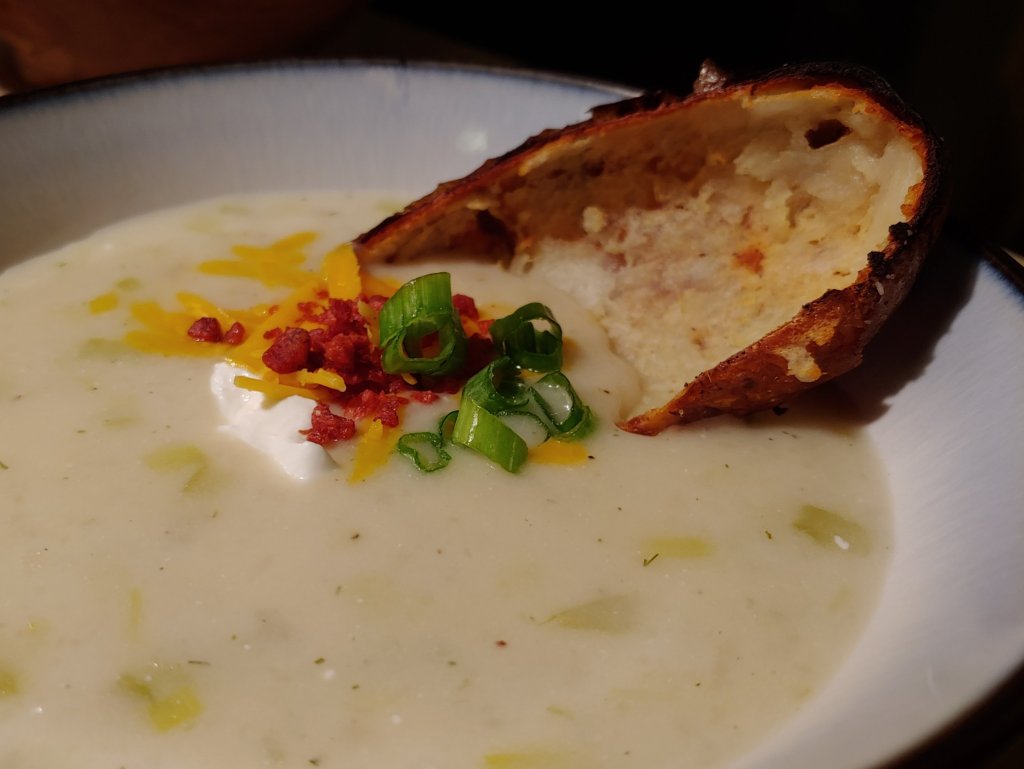 All the comforting elements of a steakhouse baked potato can be enjoyed together with a Loaded Baked Potato Soup.